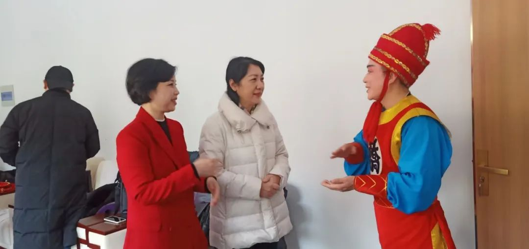 当日下午,宁凤丽同志在豫剧院相关负责人的陪同下,来到了正在紧张筹备演出的后台。她一进门便受到了演员们的热烈欢迎,随即宁凤丽同志便与郑州市戏剧艺术保护传承发展中心二级演员连德志同志展开了亲切的交流。