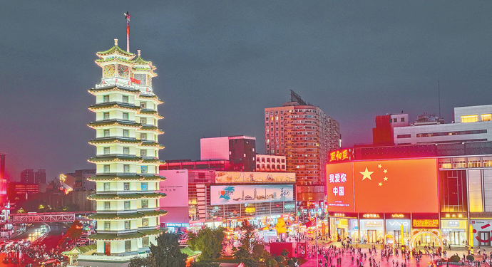 节日气氛浓厚的二七广场(资料照片) 本报记者 马健 摄