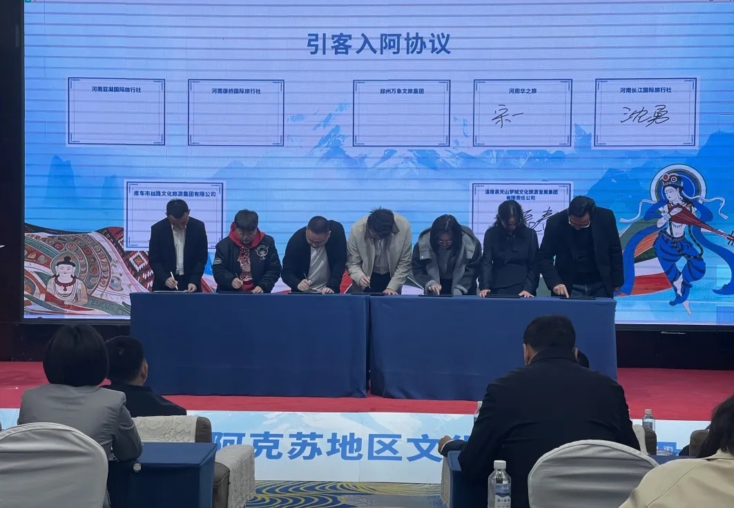 此次活动不仅为郑州市民打开了了解阿克苏的窗口,更搭建起两地文旅合作的坚实桥梁。现场,阿克苏多家文旅企业与郑州旅行社、文旅机构成功签订11项合作协议,涵盖客源互送、线路开发等多个领域,标志着两地文旅合作从“单向推介”迈向“双向赋能”的新阶段,为豫疆文旅融合发展注入新活力。